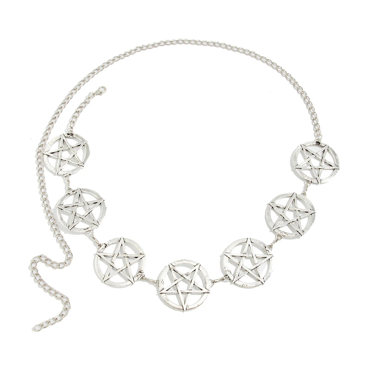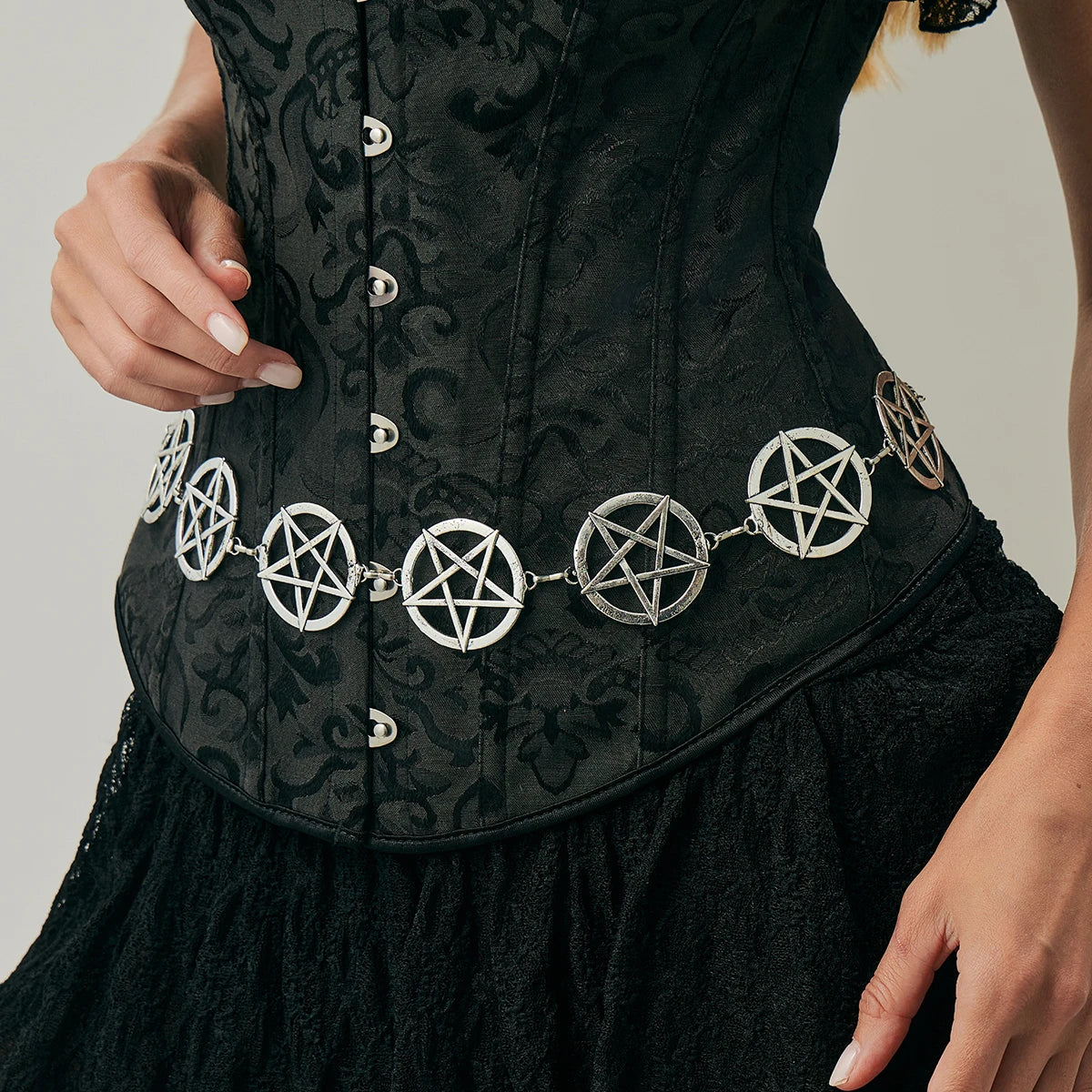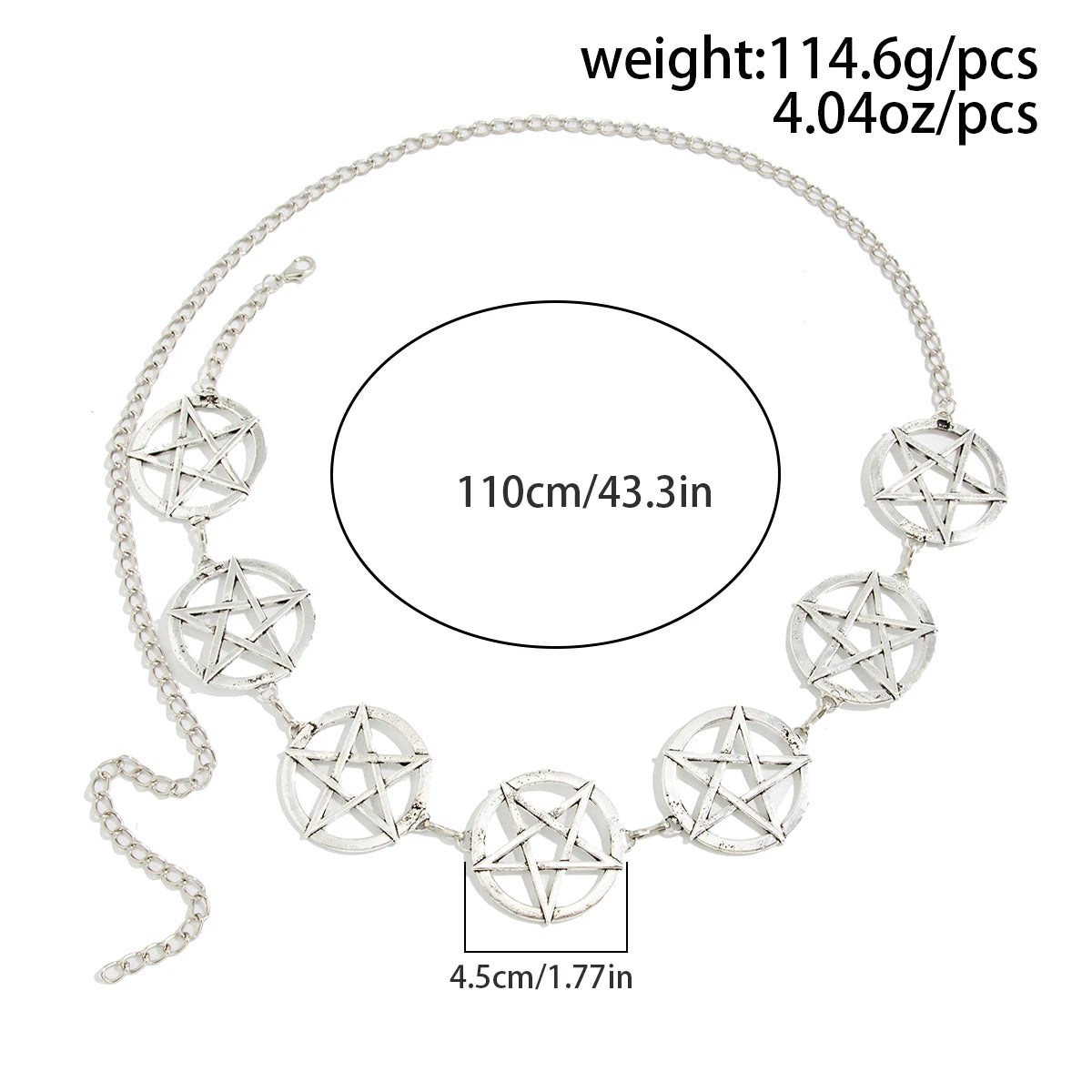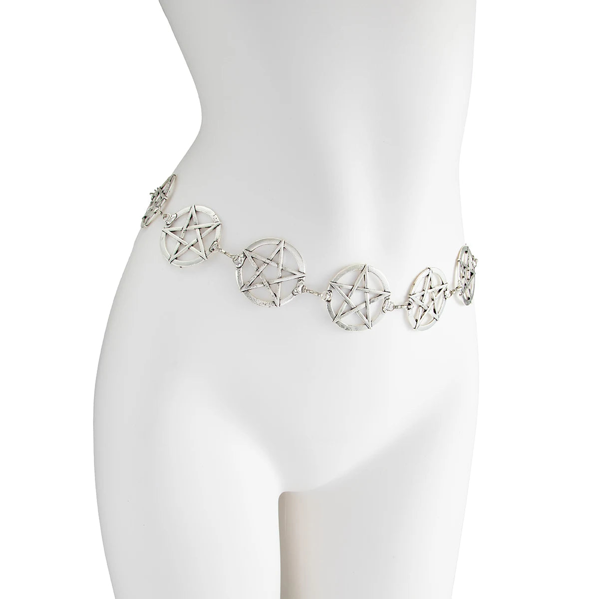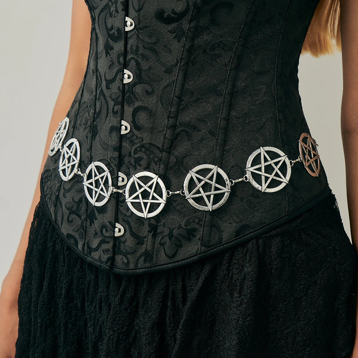La chaîne de taille Ingemark gothique circulaire avec pentagramme ajouré est un accessoire corporel unique et original, conçu pour les femmes qui souhaitent exprimer leur style audacieux et créatif. Inspirée du style neo-gothique et punk, cette ceinture pour la taille ou le ventre combine élégance, originalité et modernité, tout en s’adaptant parfaitement aux tendances actuelles de la mode. Sa finition argentée et son design circulaire ajouré avec pentagramme offrent un effet visuel captivant et distinctif, faisant de cette pièce un incontournable pour toutes celles qui souhaitent se démarquer avec sophistication et audace.